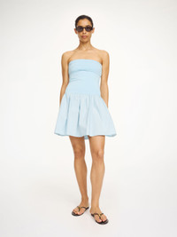 The Marcia dress will be a true favourite in any warm-weather wardrobe – it’s equally easy to wear and to style. Cut in organic cotton, the fitted upper is contrasted with a voluminous bottom. Layer the mini design under jackets or shirts – or on its own as the temperatures rise. - Slim fit - Model is 177 cm and is wearing a size S - Elastic upper - Voluminous bottom DETAILS COLOUR Dream Blue COMPOSITION 100% cotton organic CARE Wash at 30°c PRODUCT CODE Style #10380722D
