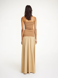 Simple in shape, yet striking in finish, the Marciella maxi dress leaves a lasting expression. Cut in organic cotton, the fitted upper is contrasted with a voluminous bottom. You will find yourself choosing it repeatedly for festive occasions, yet it’s equally wearable on weekdays, styled with the Cirra sweater. - Tight fit - Model is 175 cm and is wearing a size S - Elastic upper DETAILS COLOUR Cornstalk COMPOSITION 92% cotton organic, 8% elastane CARE Wash at 30°c PRODUCT CODE Style #1021971CL