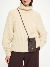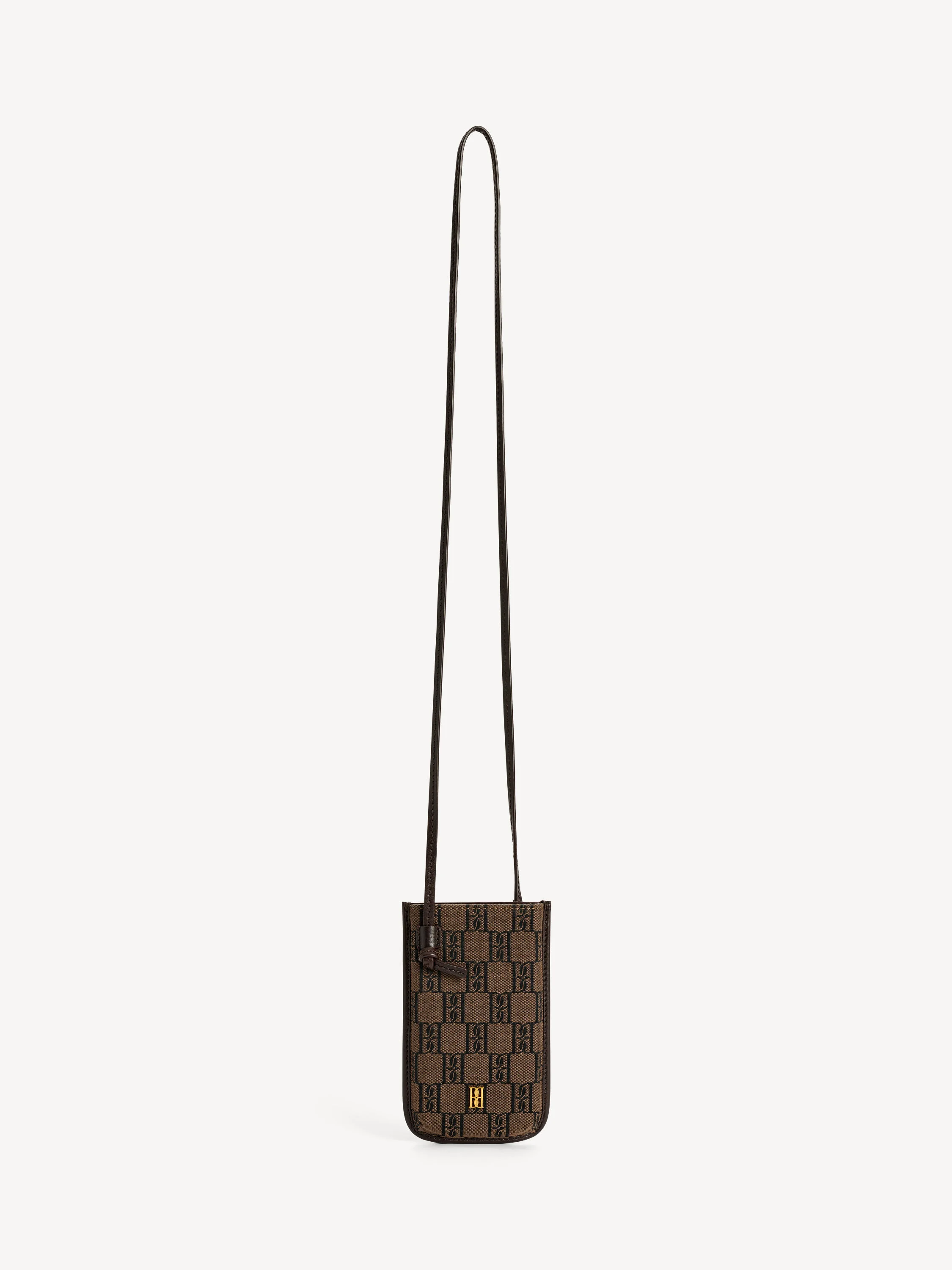 With a shape that securely store smart phones in all sizes, the Mari Phone case allows you to go hands-free at all times. The sleek design is made from supple leather and features a thin adjustable strap, a small back pocket and the house monogram. - Model is 177 cm - Adjustable strap - Back pocket - Monogram emblem - 10,5 x 17 x1 cm DETAILS COLOUR Bison COMPOSITION 51% cotton recycled, 49% polyester recycled CARE Hand wash PRODUCT CODE Style #1035421DF
