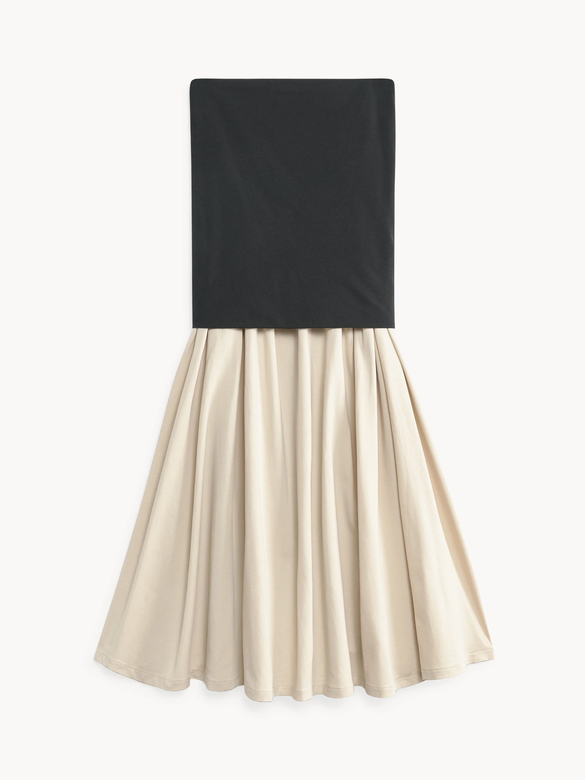 Simple in shape, yet striking in finish, the Marciella maxi dress leaves a lasting expression. Cut in organic cotton, the fitted upper is contrasted with a voluminous bottom. You will find yourself choosing it repeatedly for festive occasions, yet it’s equally wearable on weekdays, styled with the Cirra sweater. - Tight fit - Model is 174 cm and is wearing a size S - Elastic upper DETAILS COLOUR Oyster Gray COMPOSITION 92% cotton organic, 8% elastane 92% cotton organic, 8% elastane CARE Wash at 30°c PRODUCT CODE Style #1021971CT