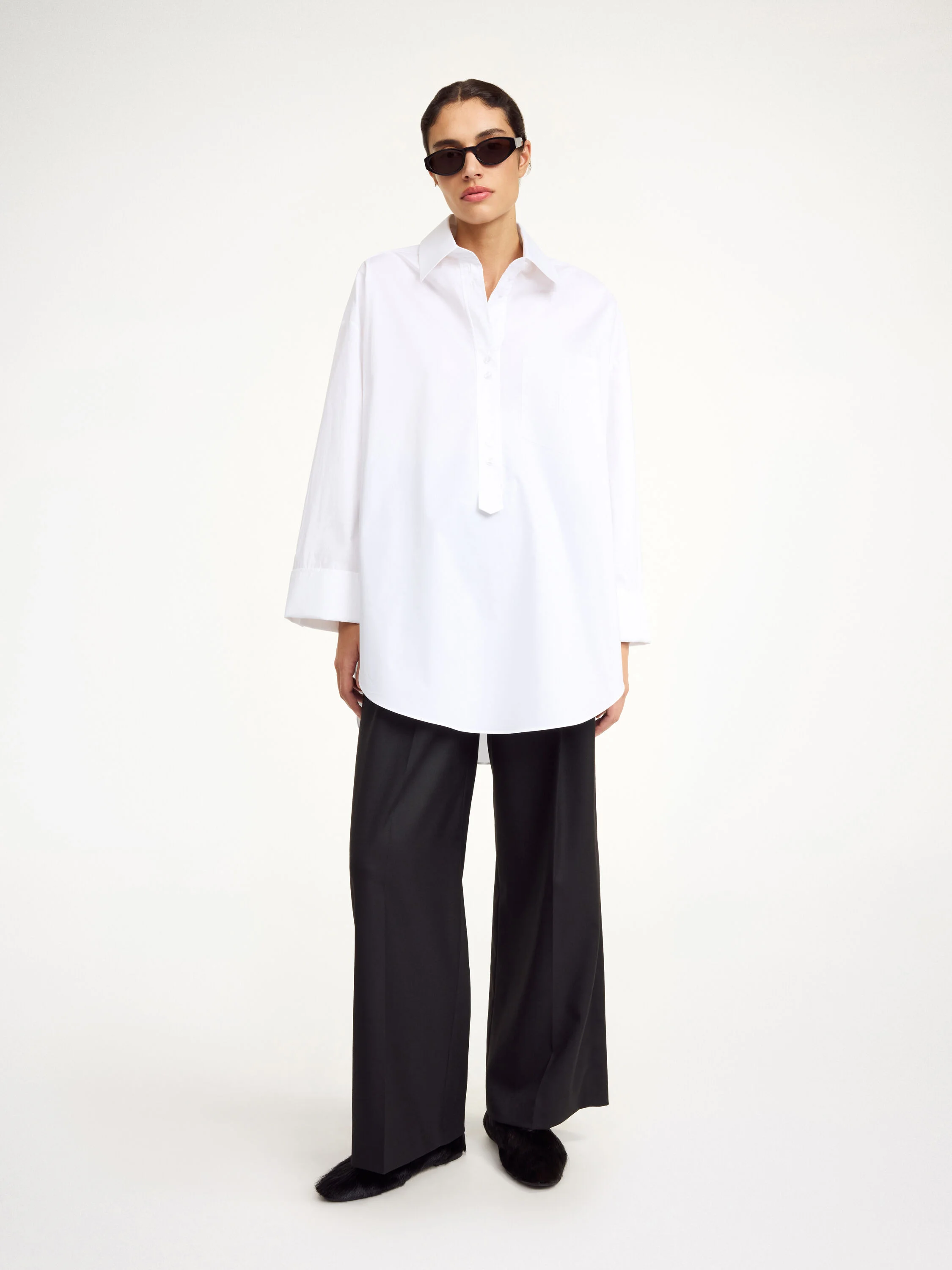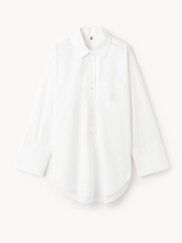 This organic cotton style is a piece you will reach for again and again. The Maye shirt is crafted in a tunic style with button closure, wide cuffs, and a front pocket. Notice the embroidered monogram that give detail to the clean silhouette. - Oversized fit - Button closure - Wide cuffs - Embroidered monogram - Rounded hems - Front pocket DETAILS COLOUR Pure White COMPOSITION 100% cotton organic CARE Wash at 30°c PRODUCT CODE Style #102457090