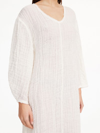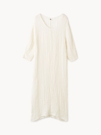 The bohemian Miolla dress showcases the relaxing spirit that defines spring 2024. Crafted from a breathable organic linen, the maxi design features a round neck and frayed trims. Contrast the lean silhouette with a statement necklace. - Loose fit - Model is 174 cm and is wearing a size 36 - Frayed trims - Wrinkled material - Round neck DETAILS COLOUR Pure White COMPOSITION 100% linen organic CARE Delicate machine wash at 30°c PRODUCT CODE Style #102163090