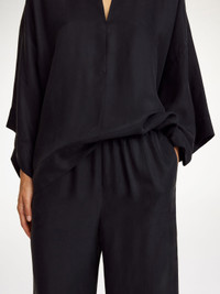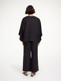 Both elegant and airy, the Mirabello trousers exude bohemian glamour. Made in a cupro mix, they’re detailed with a high elastic waistband, side pockets and wide legs. Wear with the coordinating Cicie blouse. - Loose fit - Model is 175 cm and is wearing a size 36 - Elastic waistband - Wide legs - Side pockets - Contrast-coloured hems DETAILS COLOUR Black COMPOSITION 57% cupro, 43% viscose CARE Delicate machine wash at 30°c PRODUCT CODE Style #103230050