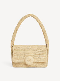 A both beach- and city-appropriate shoulder bag, the handcrafted Miro design is made in natural, un-dyed raffia – a perennial summer mainstay. The chic handbag, which will hold your most important essentials, is adorned with a large floral applique that doubles as a statement button. Notice the embroidered monogram on its side. - Handcrafted - Magnetic button closure - Front flap - Embroidered monogram - 24 x 15 x 6,5 cm - Strap length 57 cm DETAILS COLOUR Undyed COMPOSITION 100% straw CARE Clean with damp cloth PRODUCT CODE Style #103323U00