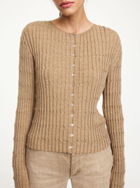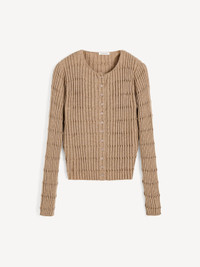 A cardigan with a point of difference – such is the Mont design. Made in a classic silhouette with buttons down the front, it’s the ruffled stretch fabrication in a merino wool mix that sets it apart. Ideal as a layer on days where you want to make an impression with low effort. - Regular fit - Model is 178 cm and is wearing a size S - Button closure - Stretch fabrication - Long sleeves - This product contains 85 % RWS wool, certified by Control Union, CU 877742. The Responsible Wool standard (RWS) verifies animal welfare and land management requirements and tracks it from the farm to the final product DETAILS COLOUR Medium Beige Melange COMPOSITION 85% wool - merino, 15% elastane CARE Hand wash PRODUCT CODE Style #103439M17