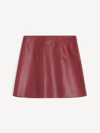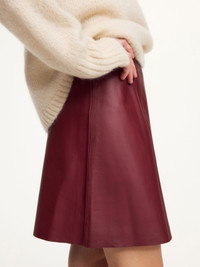Introduce a touch of edge to your transseasonal edit – courtesy of the Namia skirt. Made in supple leather with a hint of stretch, the minimalist mini design closes discreetly with a zip and hook closure. As the season changes, wear with everything from billowing cotton shirts to voluminous sweaters. - Regular fit - Model is 175 cm and is wearing a size 36 - Zip and hook closure - Fully lined DETAILS COLOUR Cabernet COMPOSITION 100% lamb leather CARE Professional leather dry clean only PRODUCT CODE Style #1038525U7