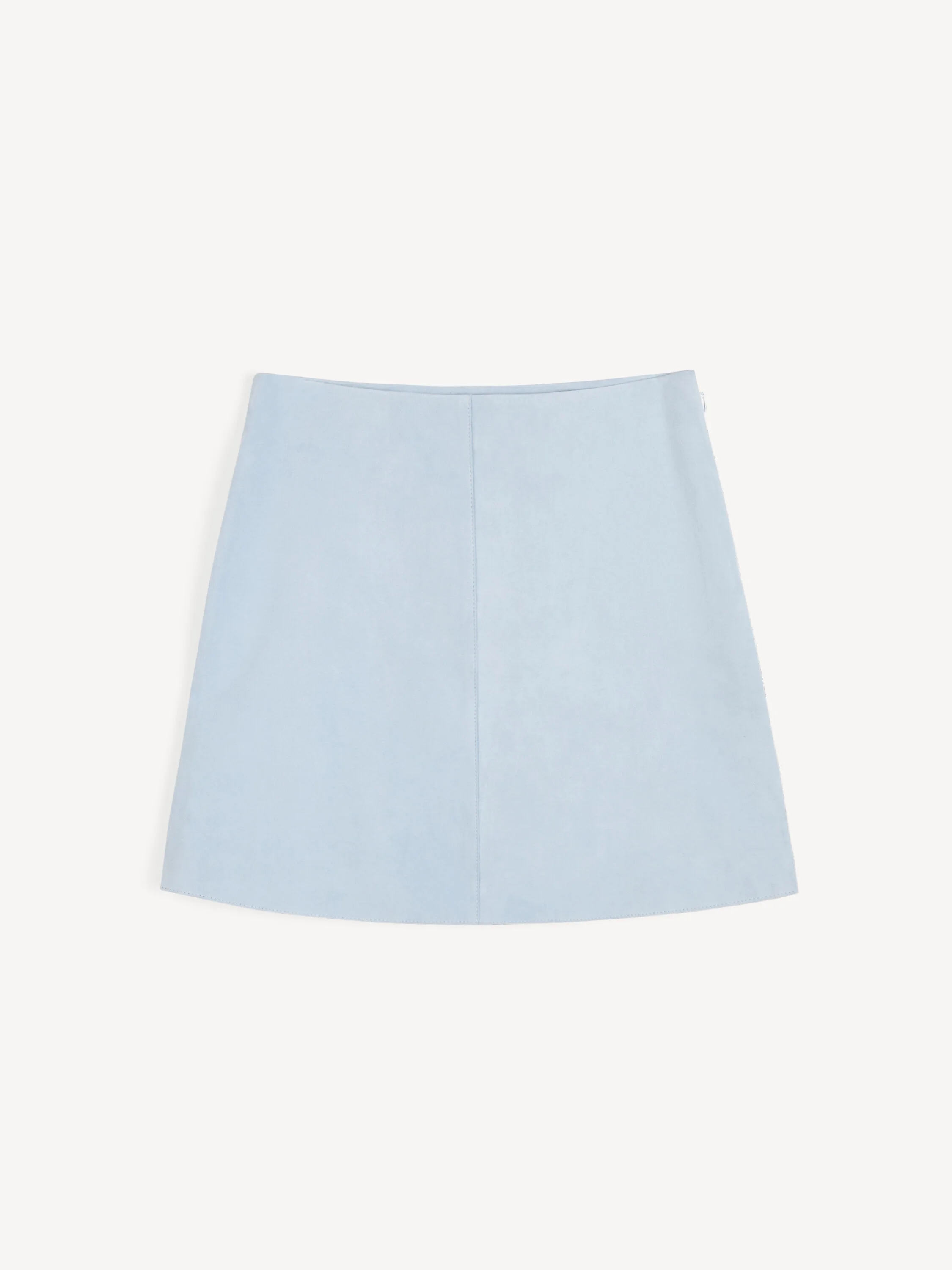 For truly timeless wardrobe additions, choose items that only get better with time – such as the Nola mini skirt in suede. Letting the velvety material speak on its own, the minimalist design features nothing but a discreet zip and hook closure. Wear with T-shirts, shirts, blazers and sweaters alike. - Regular fit - Model is 177 cm and is wearing a size 36 - Zip and hook closure - Fully lined DETAILS COLOUR Arona Blue COMPOSITION 100% goat leather CARE Professional leather dry clean only PRODUCT CODE Style #10403026A