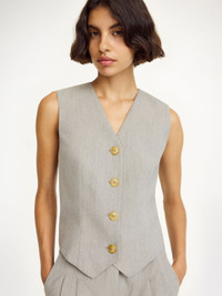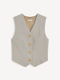 A versatile layering piece for the office, the tailored Occa waistcoat is single-breasted, fastens with a row of buttons down the front and features an adjustable buckle in the back. For a fully coordinated office ensemble, wear with the Cymbaria trousers and Railey blazer. - Regular fit - Model is 175 cm and is wearing a size 36 - Button closure - V-neck - Adjustable back buckle - Single-breasted DETAILS COLOUR Grey Brown Melange COMPOSITION 69% polyester recycled, 30% viscose (lenzing (TM) ecovero (T M) ), 1% elastane CARE Dry clean only PRODUCT CODE Style #103012M32