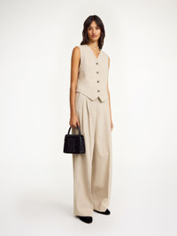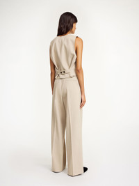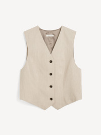 A versatile layering piece for the office, the Occa waistcoat has some details worth noticing: the tailored design is single-breasted, fastens with a row of buttons down the front and features an adjustable buckle in the back. - Regular fit - Model is 175 cm and is wearing a size 36 - Button closure - V-neck - Adjustable back buckle - Single-breasted - Made from LENZING™ ECOVERO™ viscose - "LENZING™ and ECOVERO™ are trademarks of Lenzing AG DETAILS COLOUR Beige Melange COMPOSITION 69% polyester recycled, 30% viscose (lenzing (TM) ecovero (T M) ), 1% elastane CARE Dry clean only PRODUCT CODE Style #103131M12