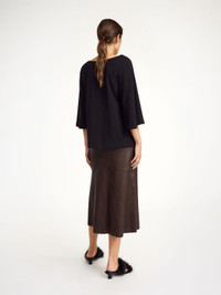 Soft to the touch and falling in a smooth drape, the Bryar top is a wardrobe staple you will wear for seasons to come. Crafted in organic cotton, it features a broad boat neckline and wide sleeves. Its styling options are endless. - Loose fit - Model is 174 cm and is wearing a size S - Boat neckline - Wide sleeves DETAILS COLOUR Black COMPOSITION 100% cotton organic CARE Delicate machine wash at 30°c PRODUCT CODE Style #102155050