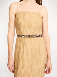Accented with a golden Scribble buckle, the Ouma belt is made from snake-embossed goat leather. Use it to add detail to trousers and jeans alike. - Model is 177 cm - Pin buckle closure - Gold-tone hardware - Scribble motif - Snake-embossed leather DETAILS COLOUR Snake COMPOSITION 100% goat leather CARE Clean with damp cloth PRODUCT CODE Style #103692QL1