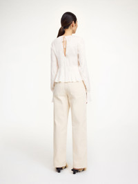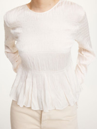 Making an eclectic assertion, the Ovas blouse is designed with smock details galore. The feminine fitted design – which features a low back with a tie closure – is ideal for special occasions. We suggest styling it with the matching Ilona skirt. - Regular fit - Model is 177 cm and is wearing a size 36 - Contains LENZING™ ECOVERO™ viscose fibers - "LENZING™ and ECOVERO™ are trademarks of Lenzing AG - Elastic fabrication - Smock details - Low back - Tie closure - Elongated sleeves - Unlined DETAILS COLOUR Cream - 093 COMPOSITION 100% viscose CARE Dry clean only PRODUCT CODE Style #103705093