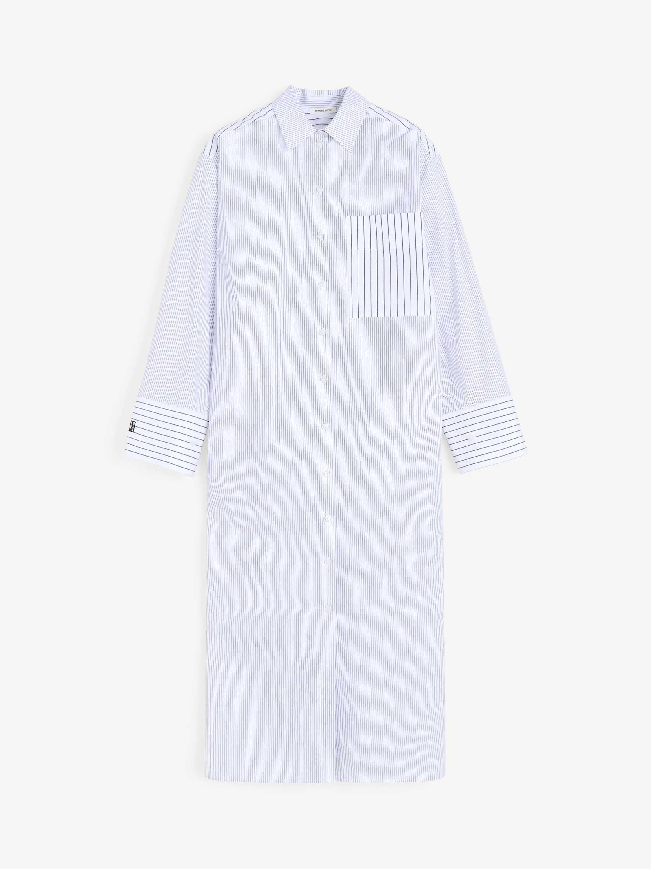 A versatile dress that can be worn almost everywhere – to the office, the beach and anywhere in between – such is the Perroti design. Made in crisp and breathable organic cotton, the button-down maxi dress is detailed with a single front pocket, adjustable cuffs, side pockets – and high side slits. - Loose fit - Model is 177 cm and is wearing a size 36 - Button closure - Front pocket - Adjustable cuff closure - Side pockets - Side slits DETAILS COLOUR Black White Mix Stripe COMPOSITION 100% cotton organic CARE Wash at 30°c PRODUCT CODE Style #103944Q09
