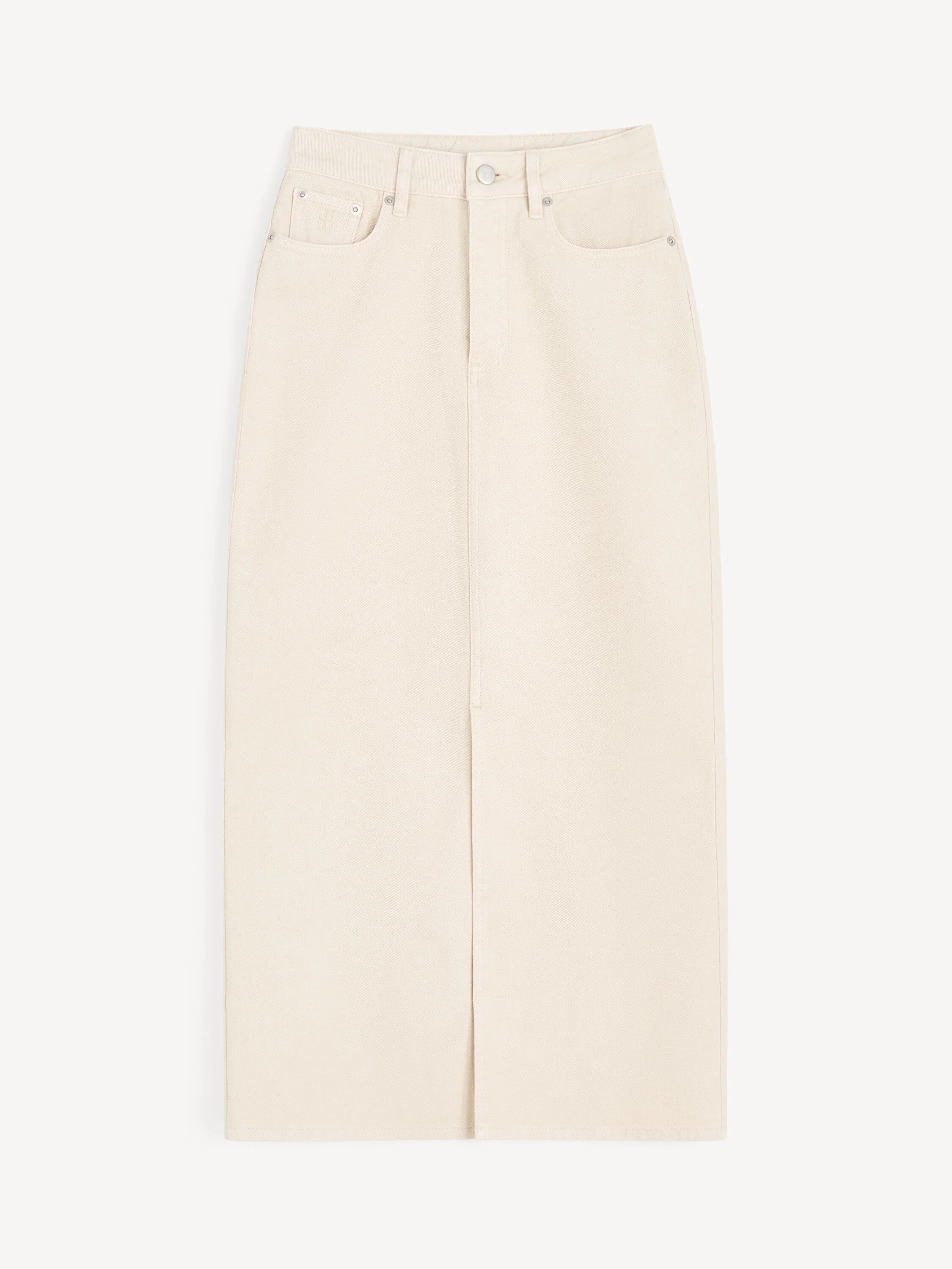 Wear the Phoenix denim skirt on weekdays for years to come. Crafted from organic cotton, the minimalist design falls to a straight silhouette and features pockets, belt loops and a zip and button closure. How you style it is up to you – we suggest a minimalistic cotton T-shirt or a luxe satin top. - Regular fit - Model is 177 cm and is wearing a size 36 - Denim fabrication - Five-pocket model - Zip and button closure - Ankle length - Front slit DETAILS COLOUR Mojave Desert COMPOSITION 100% cotton organic CARE Wash at 30°c PRODUCT CODE Style #1038161X6