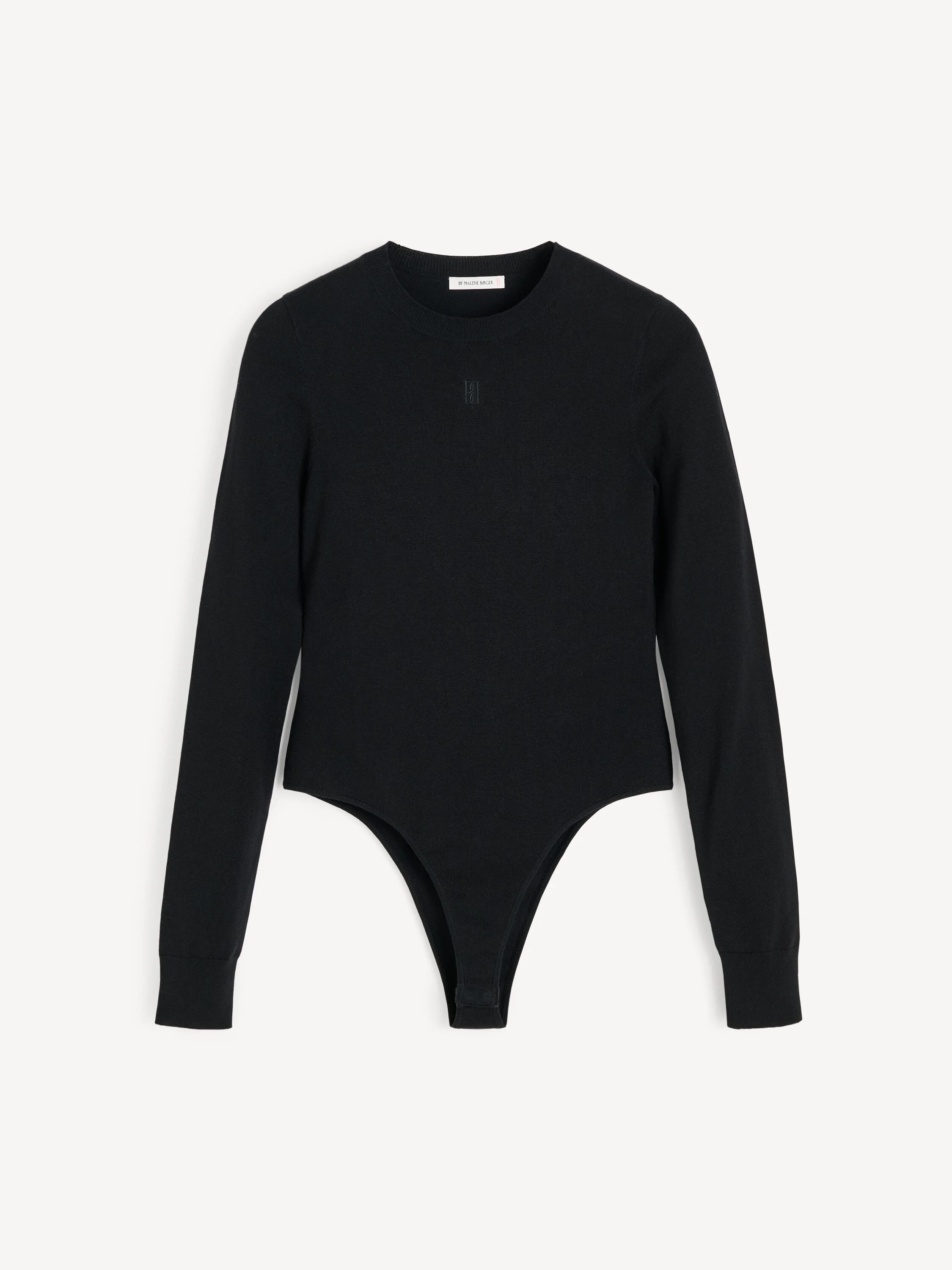 Dressing for the coldest months doesn’t have to all about voluminous sweaters. Opt for the Pil bodystocking to add a slim-fitting element to your winter edit. Made in a soft wool and silk mix, the round-neck design closes with a click button and has a discreet embroidered monogram on its front. - Regular fit - Click button closure - Round neck - Embroidered monogram - Contains TENCEL™ Lyocell fibers - TENCEL™ is a trademarks of Lenzing AG - This product contains 27% RWS wool, certified by Control Union, CU 877742. The Responsible Wool standard (RWS) verifies animal welfare and land management requirements and tracks it from the farm to the final product DETAILS COLOUR Black COMPOSITION 51% lyocell (tencel (TM)), 27% wool, 7% silk, 15% elastane CARE Hand wash PRODUCT CODE Style #103764050
