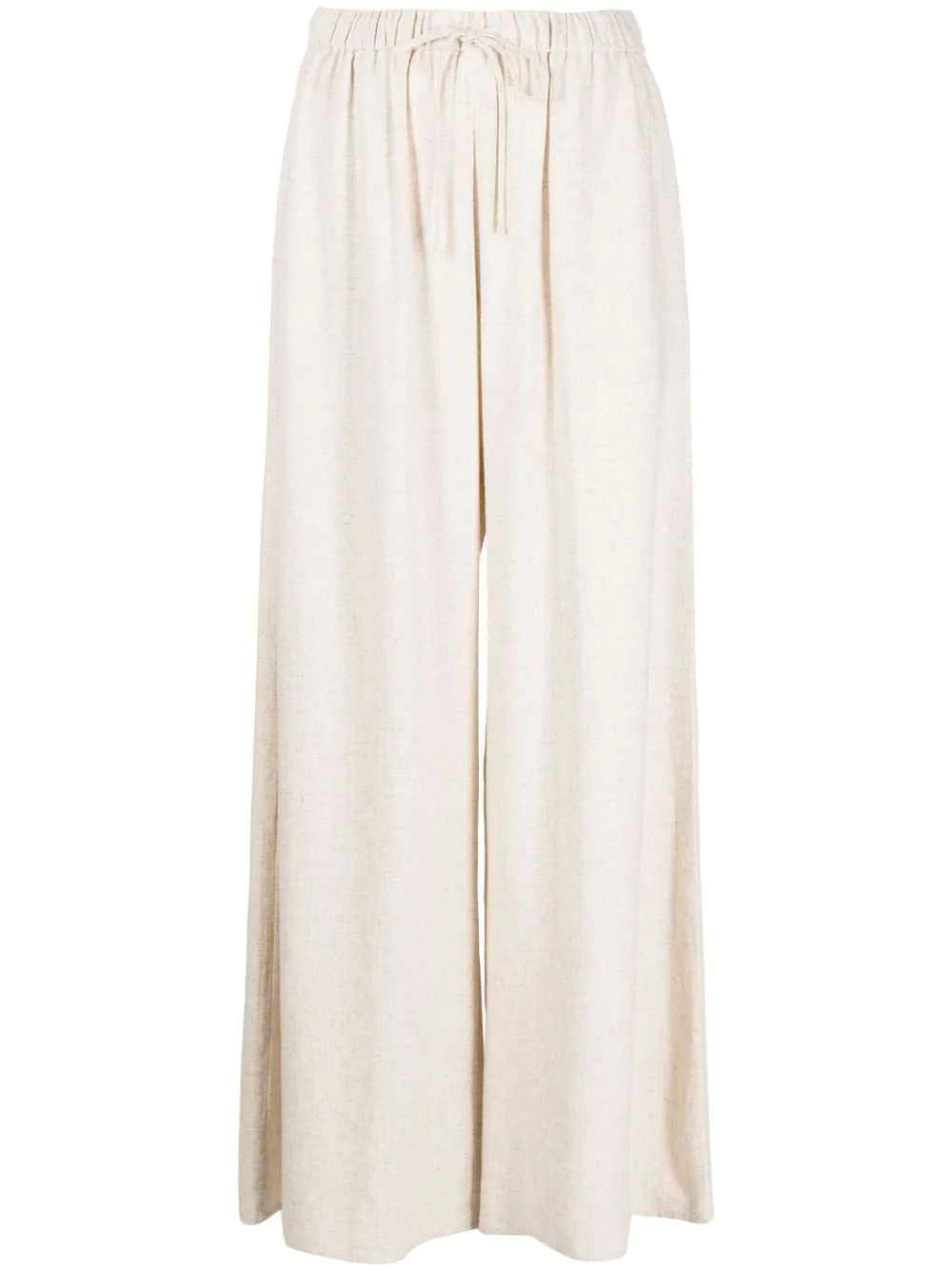 Pisca high-waisted palazzo pants The Pisca trousers from By Malene Birger are designed to sit high at the waist and boast a wide leg silhouette. Fastened with an elasticated drawstring, this pair is showcased in a muted colourway. Highlights - Ecru - Linen - Wide leg - High-waisted - Elasticated drawstring waistband - Two side slash pockets Imported Composition Linen/Flax 100% Washing instructions Machine Wash