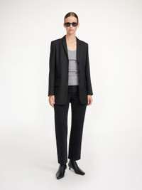 Transition free-spirited favourites and bohemian staples into your workwear wardrobe by styling with the Porter blazer. The design is cut to a single-breasted silhouette, complete with tailoring details such as notched lapels and flap pockets. Allow yours to add a touch of proportion to flared trousers and flowing skirts. - Regular fit - Single-breasted - Flap pockets DETAILS COLOUR Black COMPOSITION 69% polyester recycled, 30% viscose, 1% elastane CARE Delicate machine wash at 30°c PRODUCT CODE Style #101894050