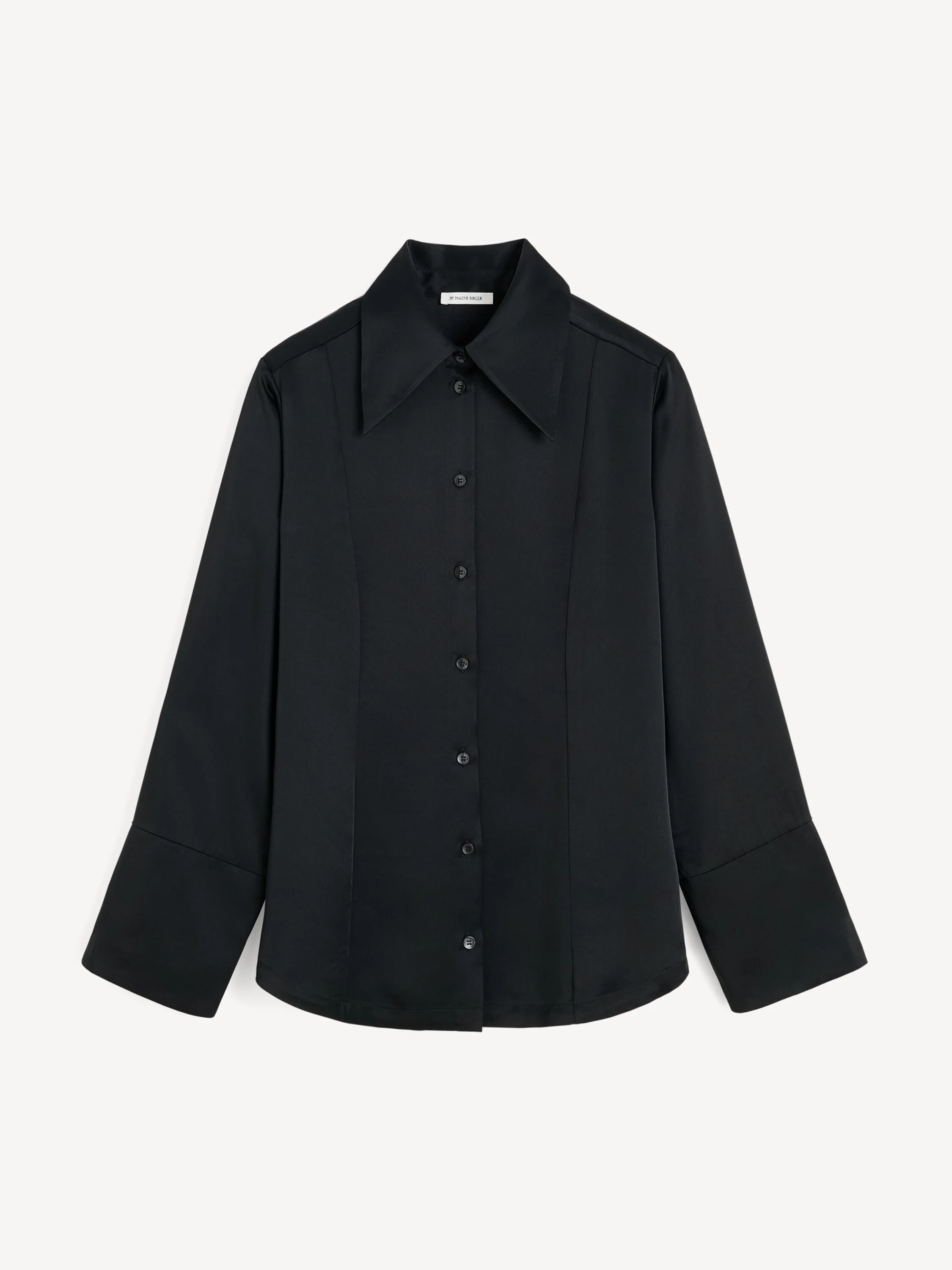 The tailored shape and satin fabrication make the Rosiannas shirt ideal for your seasonal edit. Completed with a sharp collar, button closure, and wide cuffs, the fitted silhouette goes with just about everything in your after-dark selection. - Regular fit - Model is 177 cm and is wearing a size 36 - Regular fit - Sharp collar - Button closure - Wide cuffs - Eastman Naia™ is a cellulosic fibre produced from responsibly sourced wood pulp. It is quick drying, biodegradable, supremely soft and comfortable to wear DETAILS COLOUR Black COMPOSITION 85% acetate, 15% polyester CARE Delicate machine wash at 30°c PRODUCT CODE Style #103597050