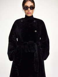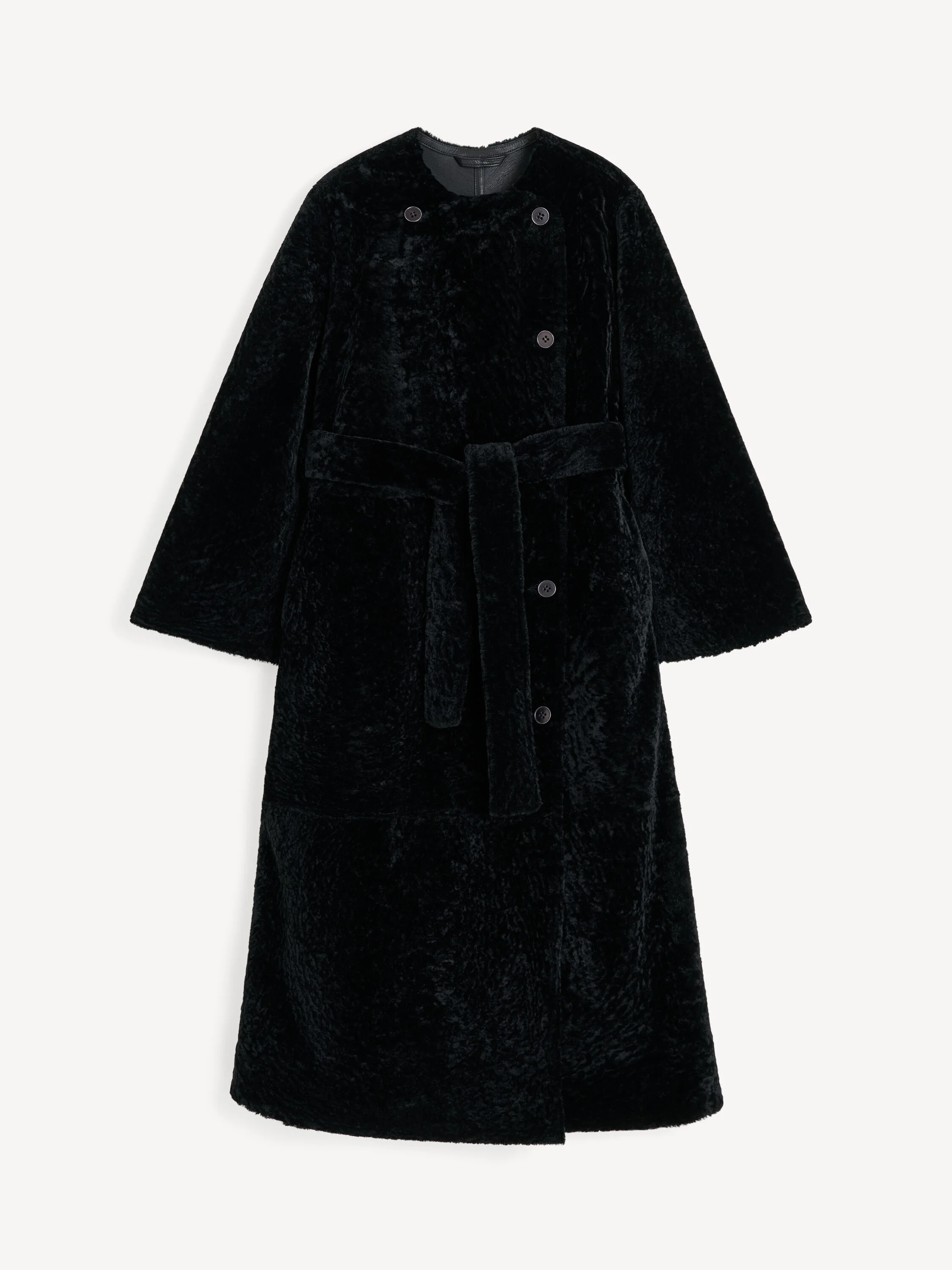 A key piece of the season, the Sandria coat in shearling is fully reversible – allowing you to go from a clean to a frothy look within seconds. The ankle-gracing silhouette is double-breasted and detailed with side pockets and a detachable belt. Complete the outerwear edit with long leather gloves. - Regular fit - Model is 178 cm and is wearing a size 36 - Reversible silhouette - Maxi length - Double-breasted - Button closure - Detachable belt - Side pockets - By purchasing this product, you are supporting responsible leather manufacturing via the Leather Working Group DETAILS COLOUR Black COMPOSITION 100% lamb fur CARE No Wash PRODUCT CODE Style #103376050