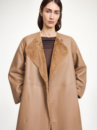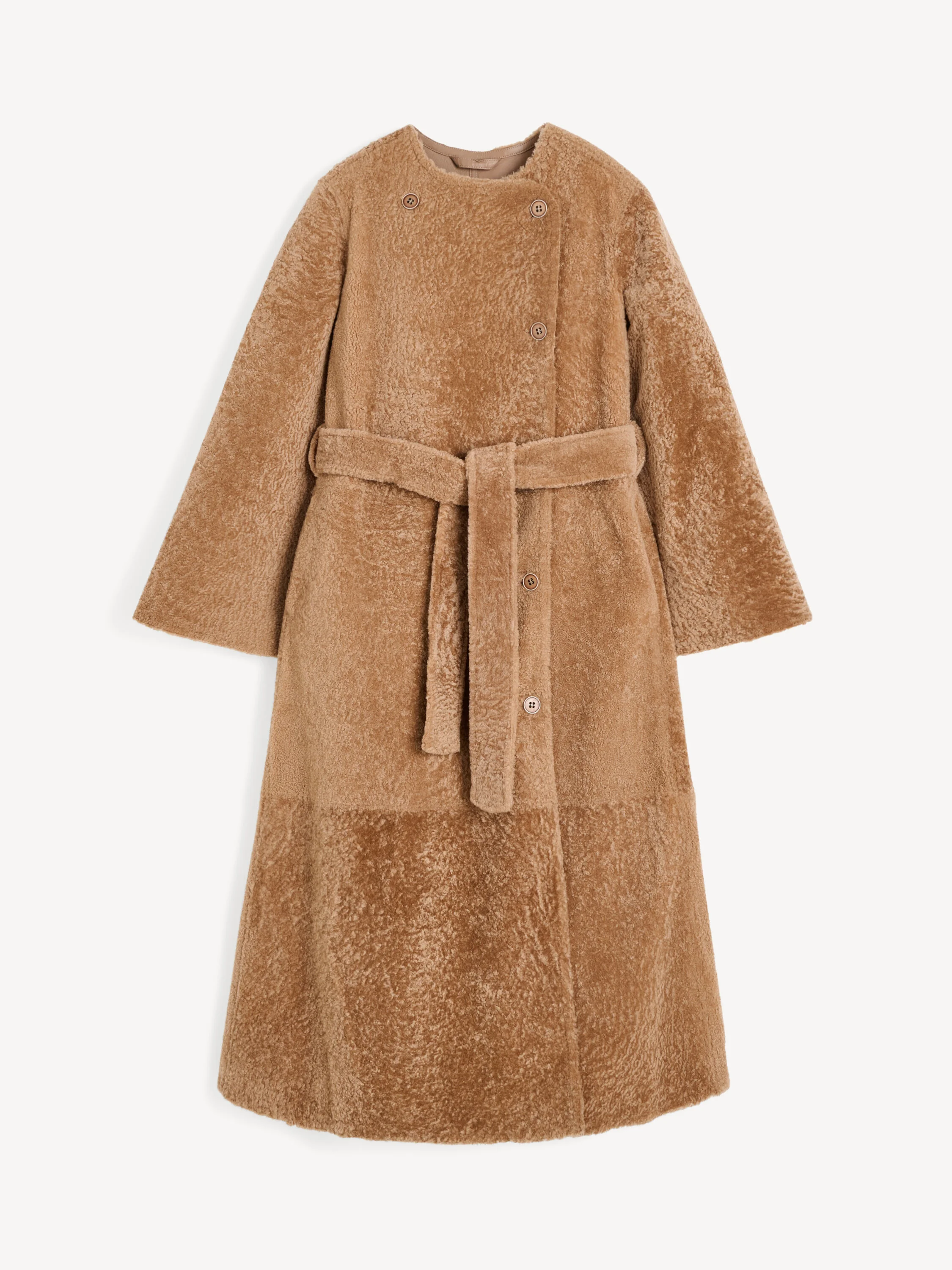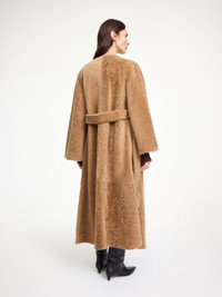 A key piece of the season, the Sandria coat in shearling is fully reversible – allowing you to go from a clean to a frothy look within seconds. The ankle-gracing silhouette is double-breasted and detailed with side pockets and a detachable belt. Complete the outerwear edit with long leather gloves. - Regular fit - Model is 177 cm and is wearing a size 36 - Reversible silhouette - Maxi length - Double-breasted - Button closure - Detachable belt - Side pockets - By purchasing this product, you are supporting responsible leather manufacturing via the Leather Working Group DETAILS COLOUR Brown Sugar COMPOSITION 100% lamb fur CARE No Wash PRODUCT CODE Style #1033761BD