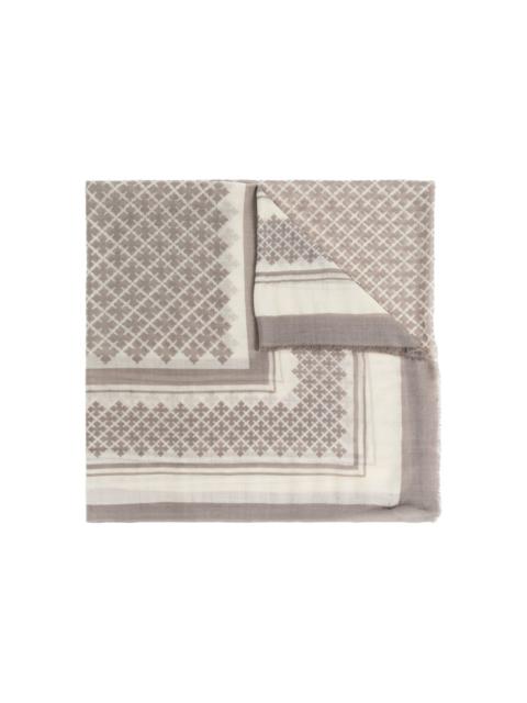 geometric-pattern scarf Highlights - Grey - Patterned design - Frayed edge Imported Composition Wool 100% Washing instructions Read Manufacturer Guidelines