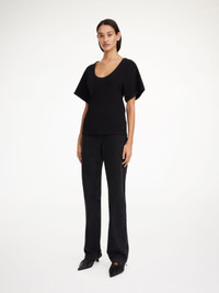Whether in or out of office, you will reach for the Lunai T-shirt repeatedly. Crafted in a stretchy organic cotton blend, the fitted design has a deep neckline and wide sleeves. - Regular fit - Model is 174 cm and is wearing a size S - Round neck - Wide sleeves DETAILS COLOUR Black COMPOSITION 98% cotton organic, 2% elastane CARE Wash at 30°c PRODUCT CODE Style #101957050