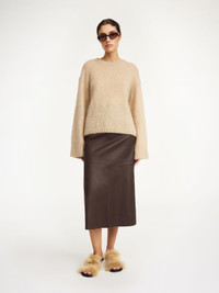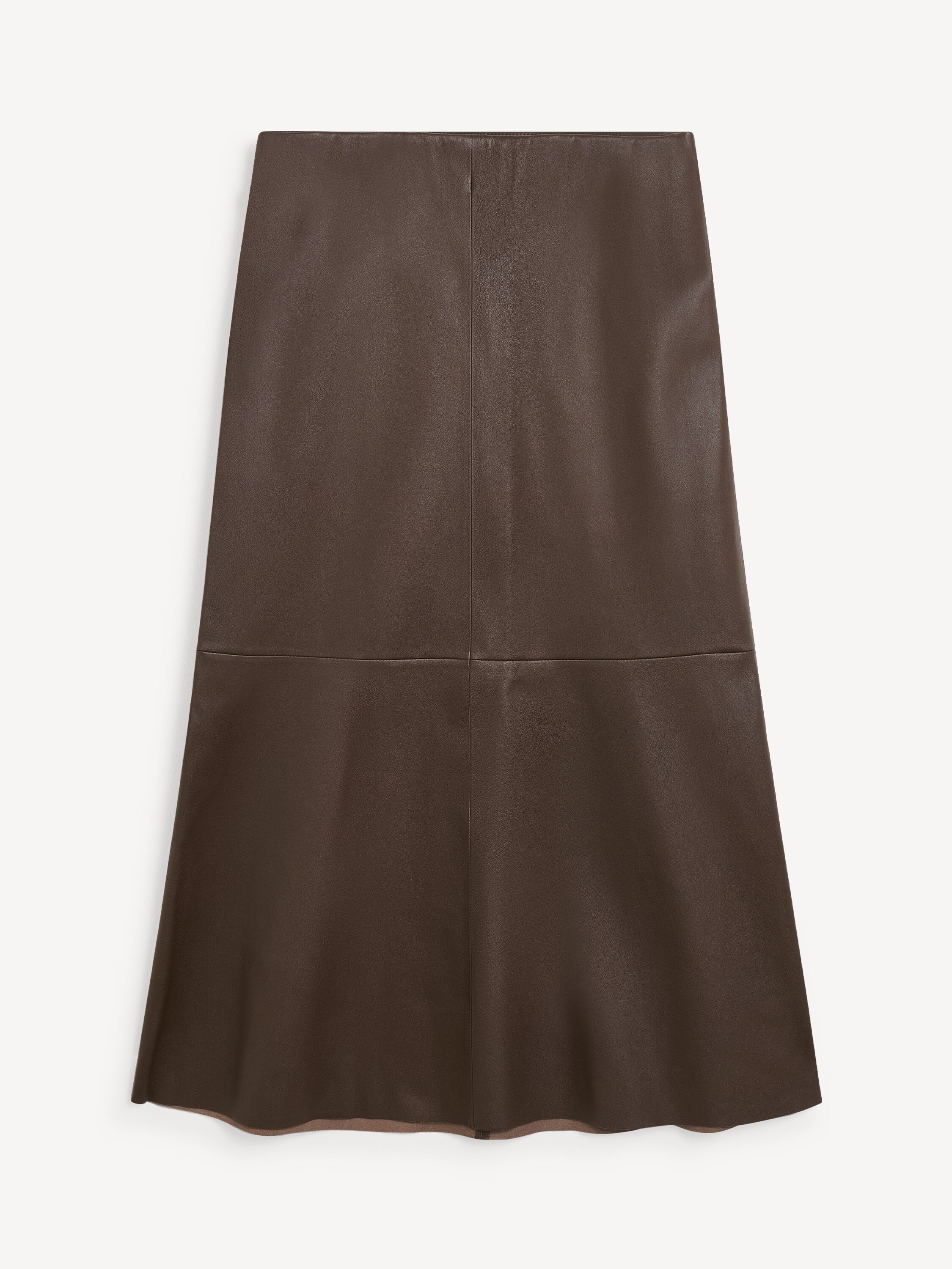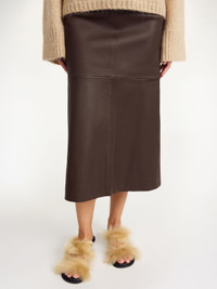A versatile design for this season and beyond, the Simoas skirt is shaped from butter-soft panels of leather with natural stretch. With its flattering A-line silhouette it can be styled with boxy T-shirts, bohemian blouses and elongated sweaters alike. - Slim fit - Model is 178 cm and is wearing a size 36 - Elastic waistband - A-line silhouette DETAILS COLOUR Dark Mahogany COMPOSITION 100% lamb leather CARE Professional leather dry clean only PRODUCT CODE Style #1022441K2