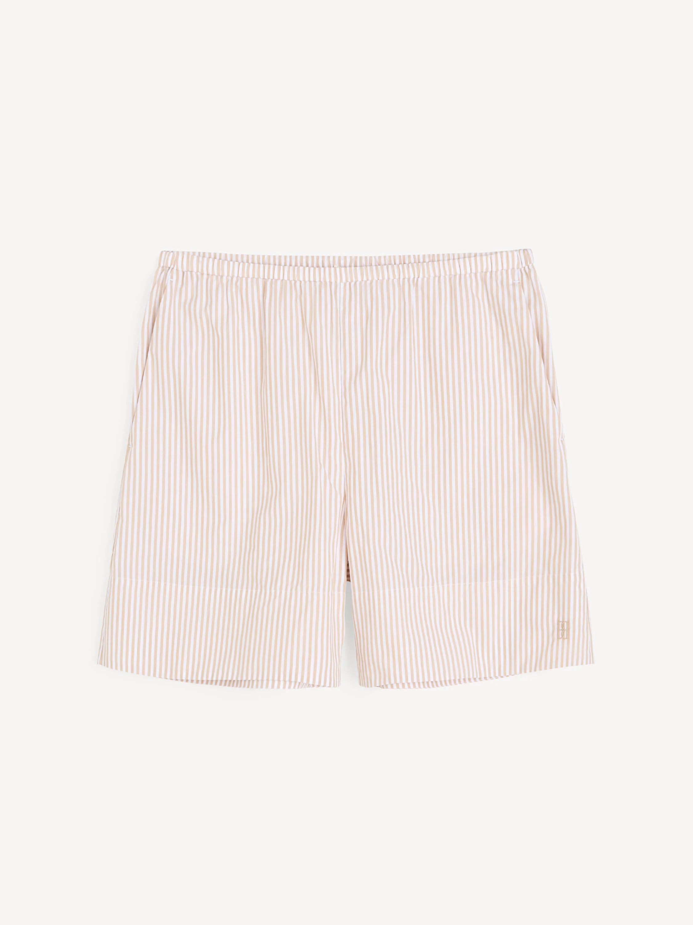 Effortless transitional styling calls for versatile pieces, such as the Siona shorts. The organic cotton design has an easy-wearing silhouette complete with an elastic waistband for optimal comfort. Wear with sweaters, blazers and T-shirts as the weather transitions. - Loose fit - Model is 175 cm and is wearing a size 36 - Elasticated waistband DETAILS COLOUR Dark Sand Stripe COMPOSITION 100% cotton organic CARE Wash at 30°c PRODUCT CODE Style #103601Q14