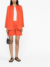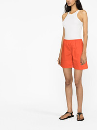 Siona organic cotton shorts Highlights - Carrot orange - Organic cotton - Elasticated waistband - Thigh-length - Straight hem Imported Composition Organic Cotton 100% SIZE & FIT Model measurements Height 5 ft 10 in(1.78 m) Bust/Chest 31.49 in(80 cm) Hips 35.03 in(89 cm) Waist 23.62 in(60 cm) FittingInformation Designed for a loose fit, offering comfort and movement when worn The elasticated waist allows for a comfortable fit Made from a midweight non-stretch fabric This piece fits true to size – take your usual size Washing instructions Machine Wash