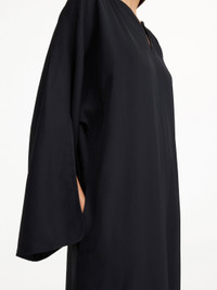 Cut for a loose fit from flowing fabric, the ankle-grazing Cais dress has an open collar and sleeves that lend the piece a laid-back feel. Wear yours with flats and a tote for day and heels for evenings. - Loose fit - Model is 180 cm and is wearing a size 36 - Eastman Naia™ is a cellulosic fibre produced from responsibly sourced wood pulp. It is quick drying, biodegradable, supremely soft and comfortable to wear - Open sleeves and collar - Slips on DETAILS COLOUR Black COMPOSITION 100% acetate CARE Dry clean only PRODUCT CODE Style #101934050