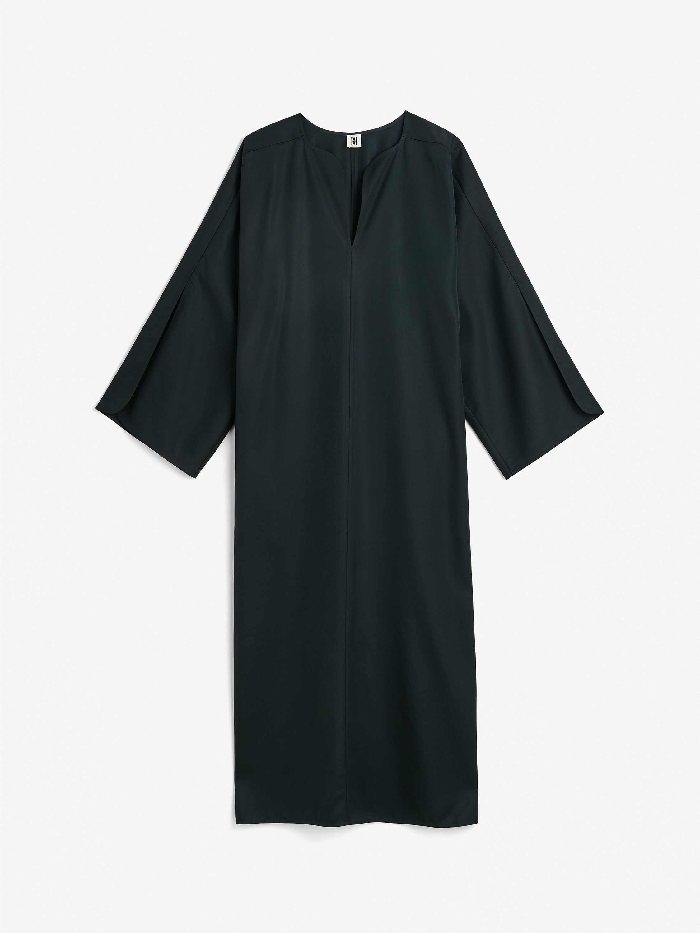 Cut for a loose fit from flowing fabric, the ankle-grazing Cais dress has an open collar and sleeves that lend the piece a laid-back feel. Wear yours with flats and a tote for day and heels for evenings. - Loose fit - Model is 180 cm and is wearing a size 36 - Eastman Naia™ is a cellulosic fibre produced from responsibly sourced wood pulp. It is quick drying, biodegradable, supremely soft and comfortable to wear - Open sleeves and collar - Slips on DETAILS COLOUR Black COMPOSITION 100% acetate CARE No Wash PRODUCT CODE Style #101934050