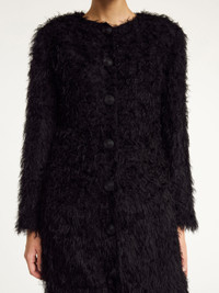 The Susenne dress combines feminine touches with a fluffy fabrication, making it a hassle-free everyday staple that doubles as a long cardigan. Its classic button closure and round neck contrasts the bold maxi silhouette. Wear it to a festive event or layered over your weekend attire. - Regular fit - Model is 178 cm and is wearing a size 36 - Round neck - Button closure - Fluffy fabrication DETAILS COLOUR Black COMPOSITION 100% viscose CARE Dry clean only PRODUCT CODE Style #102583050