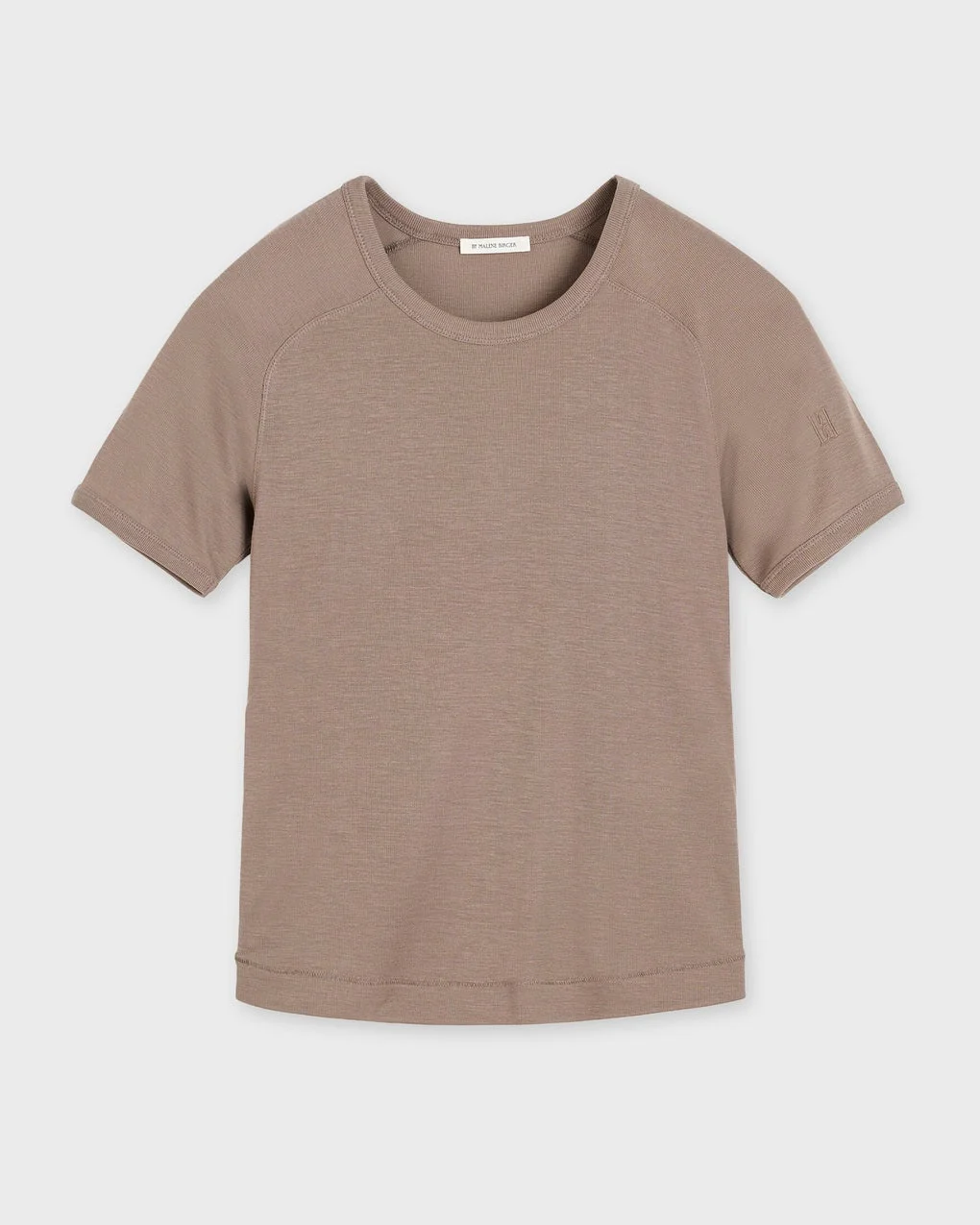 T-shirt Alezia Lyocell from By Malene Birger. Made from breathable Lyocell fabric, the Alezia T-shirt is perfect for weekdays, weekends, and everything in between. Its classic raglan silhouette is decorated with a distinctive embroidered monogram on the chest. The T-shirt has a slim fit. Size and Fit - Fits true to size, choose your usual size - The model is 175 cm tall and is wearing size S Specification - Article number - ID: 177359-950 - Brand: By Malene Birger - Color: Chocolate - Washing Instructions: Delicate machine wash at 30°c - Made of: 100% lyocell