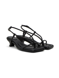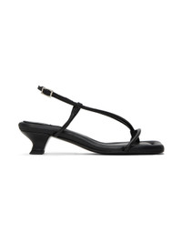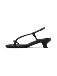 Padded LWG-certified grained leather heeled sandals in black. · Open square toe · Thong-style strap at vamp · Pin-buckle slingback strap · Logo embossed at leather footbed · Covered kitten heel with rubber injection · Leather sole with rubber injection · Heel: 2" Supplier color: Black Upper: leather. Sole: leather, rubber. Made in Italy 241295F125000