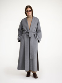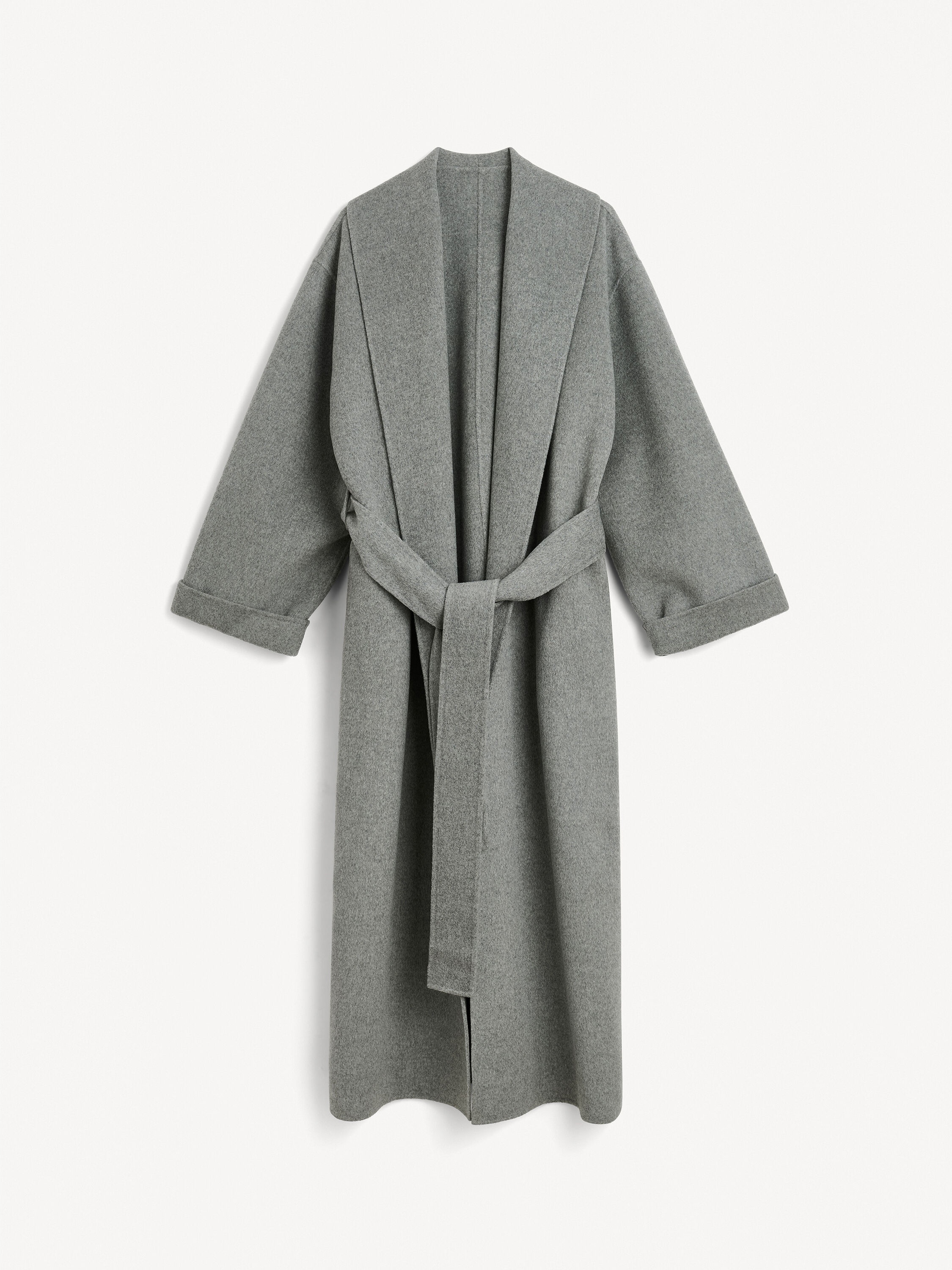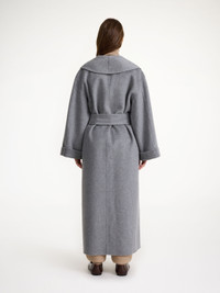 This classic wool-blend coat fits loosely, allowing layers to be worn underneath the longline style. The subtle shawl collar adds a soft element to the otherwise clean-cut coat. Wear your with tonal layers. - Loose fit - Shawl collar - This product contains 100% RWS wool, certified by Control Union, CU 877742. The Responsible Wool standard (RWS) verifies animal welfare and land management requirements and tracks it from the farm to the final product. DETAILS COLOUR Grey Melange COMPOSITION 100% wool CARE Dry clean only PRODUCT CODE Style #101890T5M