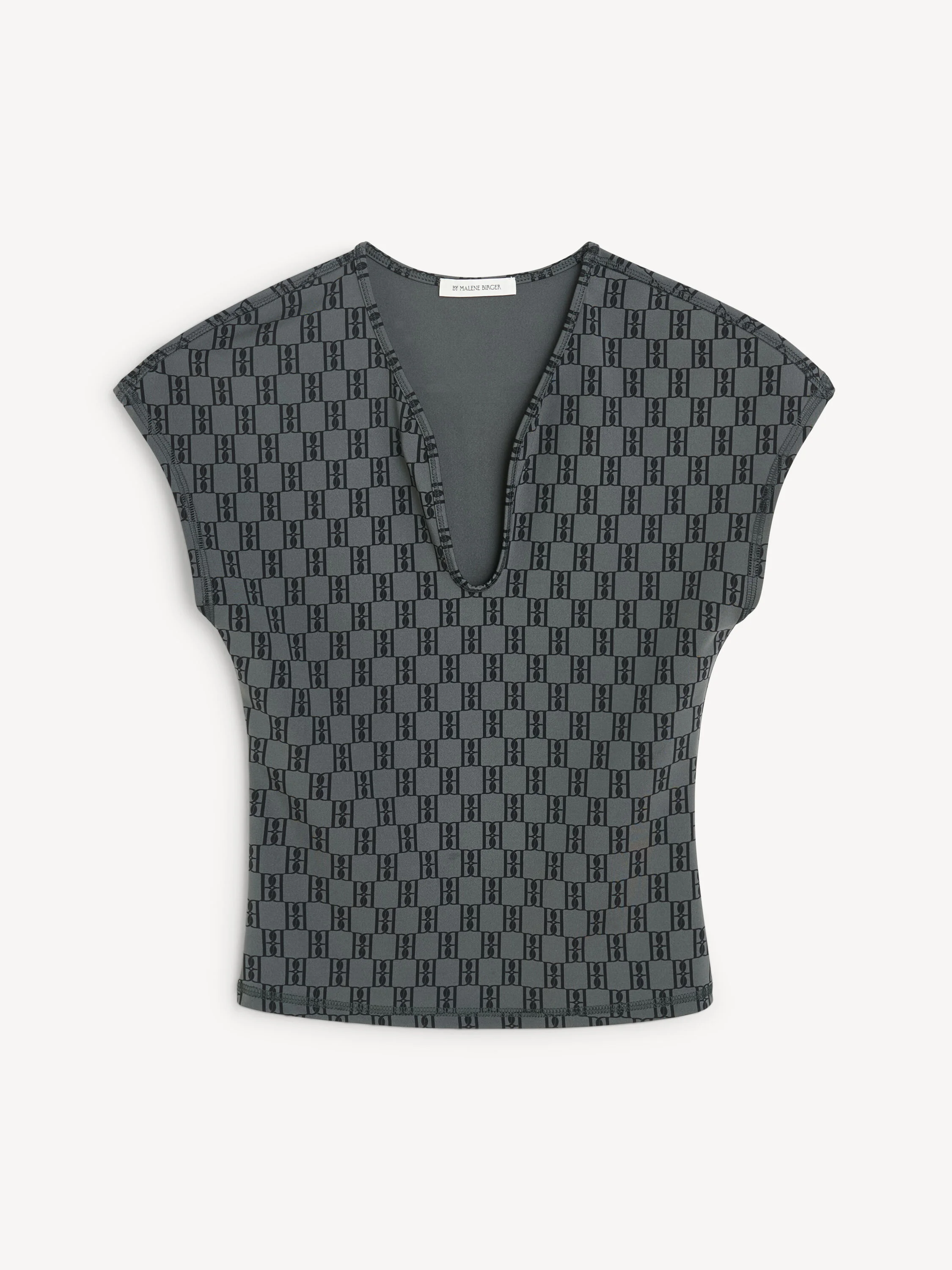 Combining By Malene Birger’s feminine design notes with sporty apparel, the Venazia top fits seamlessly into both your gym and weekend edit. Cut in a body-hugging sporty fabrication, the sleek design has a V-neck and slightly dropped shoulders. Wear with the matching Siola shorts. - Slim fit - Model is 175 cm and is wearing a size S - Athleisure wear - Tight fit - Monogram print - V-neck DETAILS COLOUR Monogram Black & Grey COMPOSITION 46% polyamide recycled, 30% polyamide, 24% elastane CARE Wash at 40°c PRODUCT CODE Style #102368QB8