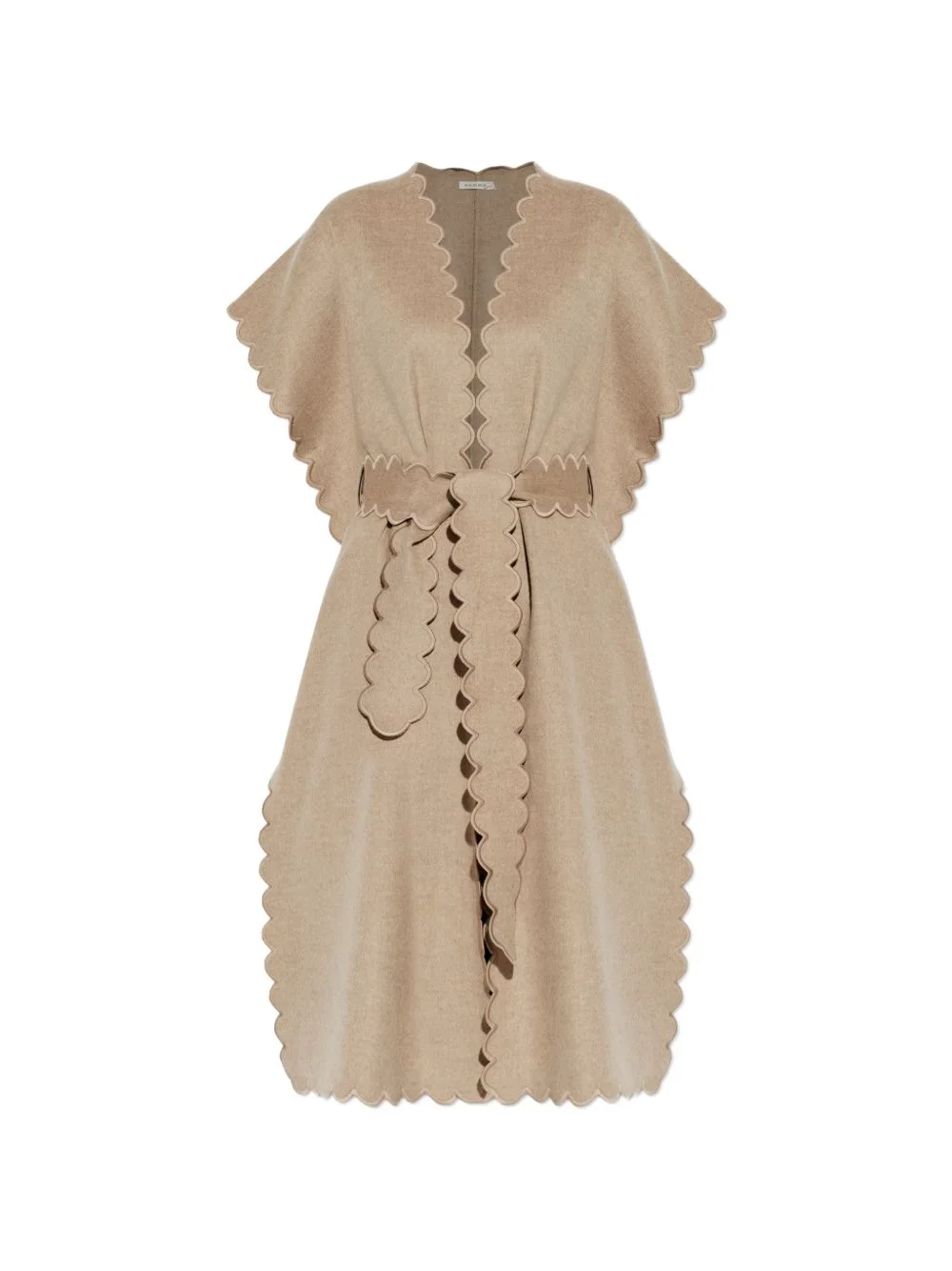 Vibe coat Highlights - Light beige - Wool - Scallop edge - Open front - Belted waist Imported Composition Wool 100% Washing instructions Read Manufacturer Guidelines