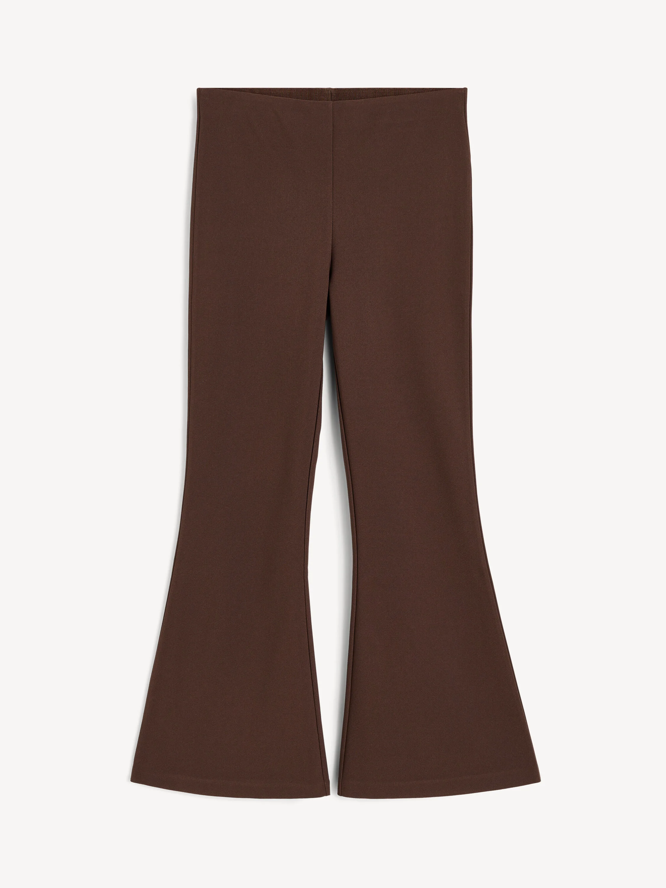 By Malene Birger Vilanna trousers made from a luxurious blend of materials. The design has a comfortable mid waist, flared silhouette, and cropped legs. Wear it throughout the week with an oversized blazer and knitwear. - Regular fit - Mid waist - Cropped legs DETAILS COLOUR Coffee Brown COMPOSITION 56% polyester recycled, 39% polyester, 5% elastane CARE Delicate machine wash at 30°c PRODUCT CODE Style #1018001BM