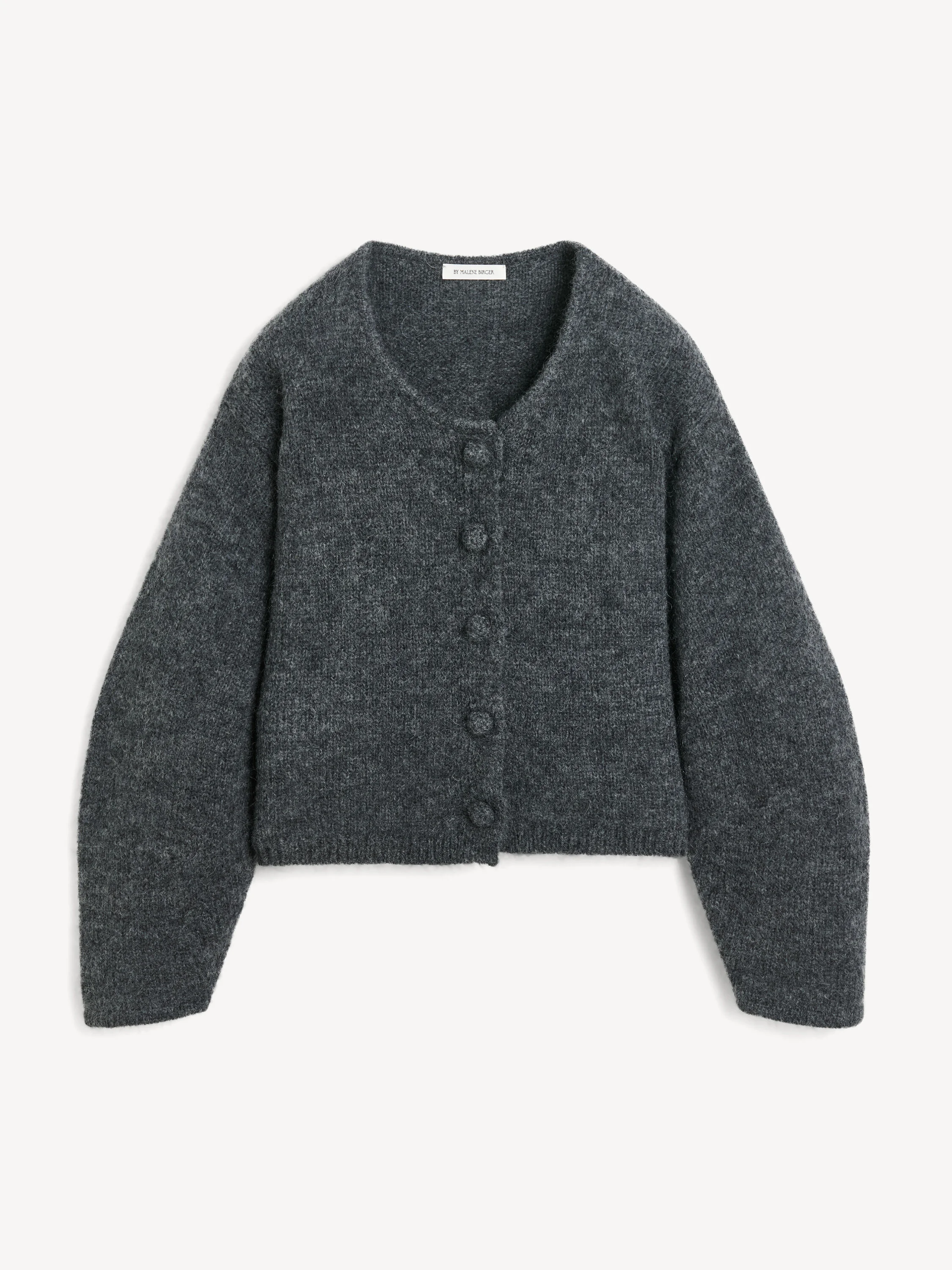 No wardrobe is complete without a chic and classic cardigan, such as the Zharea cardigan. Made to be worn when the temperatures drop, the cropped design is crafted in a soft mohair and wool mix. Wear with the Hannas leather skirt for a tactile look. - Regular fit - : Model is 175 cm and is wearing a size S - Cropped silhouette - Button closure - Round neckline - This product contains 49% RWS wool and 30% RMS mohair, certified by Control Union, CU 877742. Responsible Mohair Standard (RMS) & Wool standard (RWS) verifies animal welfare and land management requirements and tracks it from the farm to the final product DETAILS COLOUR Grey Melange COMPOSITION 49% wool, 30% mohair, 21% polyamide CARE Hand wash PRODUCT CODE Style #102512T5M