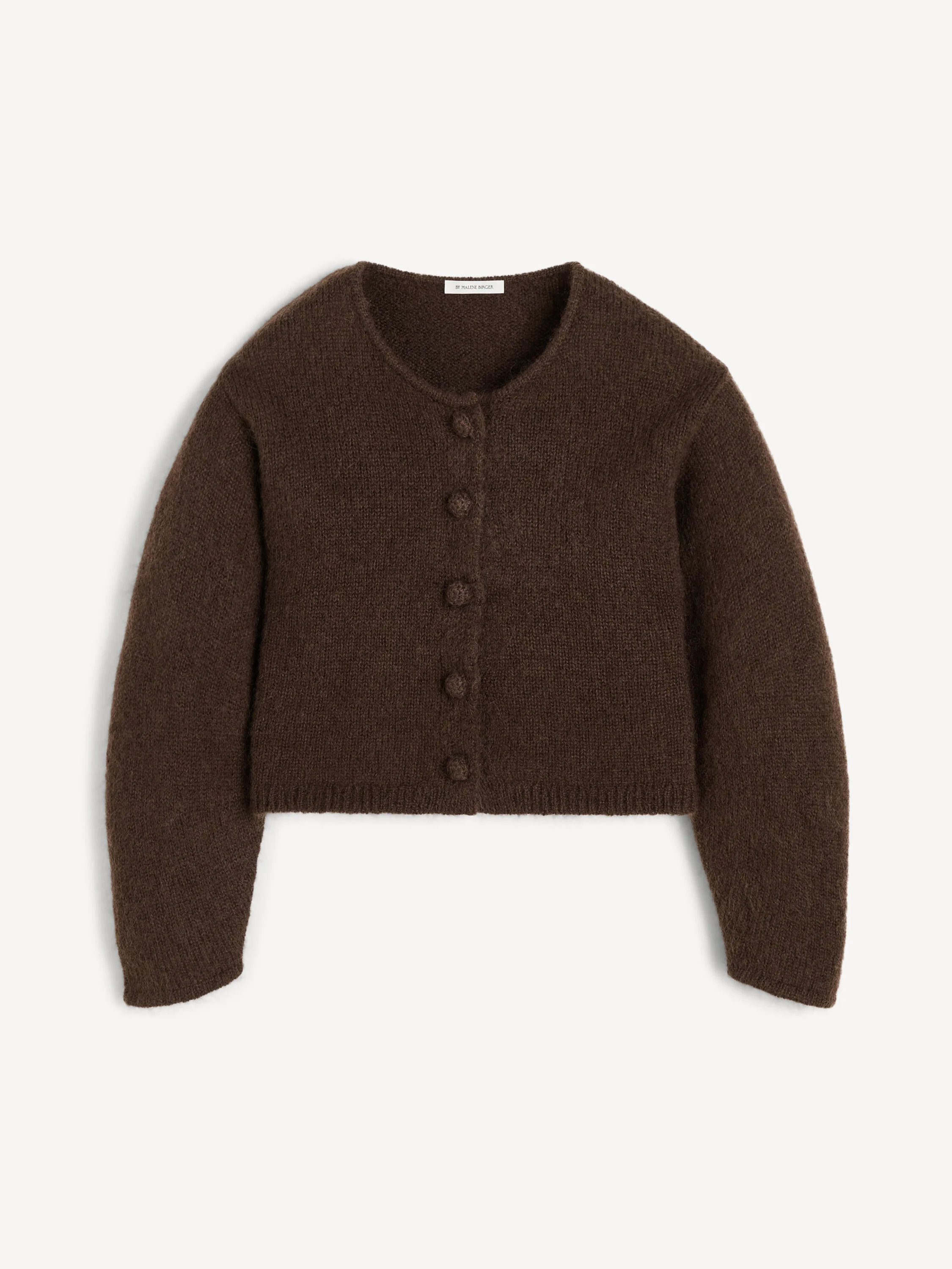 No wardrobe is complete without a chic and classic cardigan, such as the Zharea cardigan. Made to be worn when the temperatures drop, the cropped design is crafted in a soft mohair and wool mix. Wear with the Hannas leather skirt for a tactile look. - Regular fit - Model is 177 cm and is wearing a size S - Cropped silhouette - Button closure - Round neckline - This product contains 49% RWS wool and 30% RMS mohair, certified by Control Union, CU 877742. Responsible Mohair Standard (RMS) & Wool standard (RWS) verifies animal welfare and land management requirements and tracks it from the farm to the final product DETAILS COLOUR Dark Mahogany COMPOSITION 49% wool, 30% mohair, 21% polyamide CARE Hand wash PRODUCT CODE Style #1025121K2