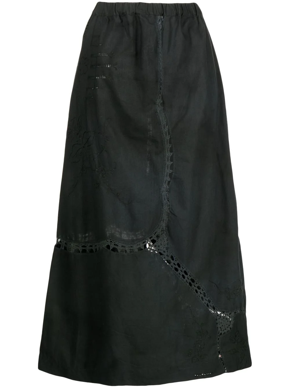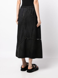 embroidered-detail cotton long skirt Highlights - Black - Cotton - Asymmetric pattern embroidery - Elasticated waistband - Long length Made in United Kingdom Composition Cotton 100% SIZE & FIT Model measurements Height 5 ft 9 in(1.76 m) Bust/Chest 31.1 in(79 cm) Hips 35.03 in(89 cm) Waist 24.4 in(62 cm) FittingInformation This midi-length skirt is intended to be worn just below the waist The elasticated waist allows for a comfortable fit Made from a midweight non-stretch fabric This piece fits true to size – take your usual size