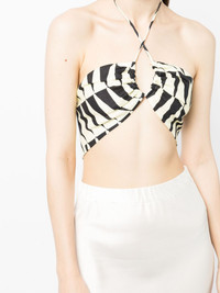 Bari halterneck top Highlights - Banana yellow/ash grey - Linen/flax - Abstract pattern print - Halterneck tie fastening - Open back - Cropped Imported Composition Linen/Flax 100% SIZE & FIT Model measurements Height 5 ft 11 in(1.8 m) Bust/Chest 28.34 in(72 cm) Hips 35.43 in(90 cm) Waist 23.62 in(60 cm) Washing instructions Dry Clean Only