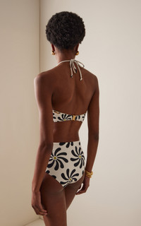 Hailing from Cali, Colombia, Cala de la Cruz is the brainchild of Carolina Lopez, who harnesses her expertise in textiles, bold prints, and mesmerizing color combinations into responsibly fabricated and produced warm-weather treasures that exude a joyful ease. Made just for us in an exclusive print, the 'Elisa' bikini bottom has a high-cut silhouette with SPF 50 protection. Complete the set with the matching top. PRODUCT DETAILS - Pre-Fall '25 - Pull on - Composition: 52% recycled polyamide, 30% polyamide, 18% elastane - Designer color: Riviera/ Ivory - Hand wash - Made in Colombia SIZE & FIT - Our model is wearing a size Small - Model is 5'10" with a 30" bust, 24" waist, and 34" hip - Designed for full coverage