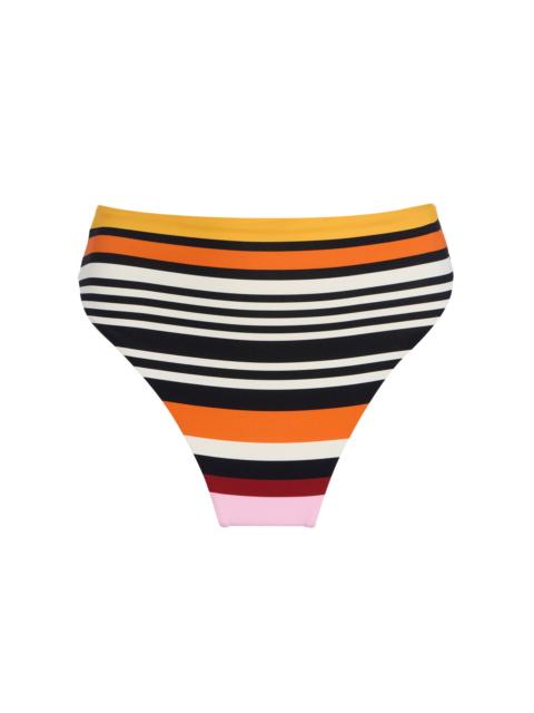 Hailing from Cali, Colombia, Cala de la Cruz is the brainchild of Carolina Lopez, who harnesses her expertise in textiles, bold prints, and mesmerizing color combinations into responsibly fabricated and produced warm-weather treasures that exude a joyful ease. Made from partially recycled materials, the 'Lulu' bikini bottom has a high-cut, ultra-high rise silhouette that both supports and elongates the legs. Complete the set with the matching top. PRODUCT DETAILS - Pre-Fall '25 - Slip on - Composition: 52% Recycled Polyamide, 30% Polyamide, 18% Elastane - Dry clean - Made in Colombia SIZE & FIT - Designed for moderate coverage