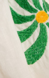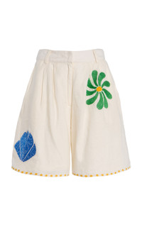 Hailing from Cali, Colombia, Cala de la Cruz is the brainchild of Carolina Lopez, who harnesses her expertise in textiles, bold prints, and mesmerizing color combinations into responsibly fabricated and produced warm-weather treasures that exude a joyful ease. The 'Sia' shorts are tailored with a high-waist, pleats, and detailed with hand-done embroidery. PRODUCT DETAILS - Pre-Fall '25 - Concealed zip and hook fastening - Composition: 100% Linen - Dry clean - Made in Colombia SIZE & FIT - Designed for a relaxed fit
