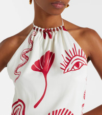 This Accasia maxi dress from Cala de la Cruz is perfect for sun-soaked special occasions. The printed piece features embellishments and has a self-tie neckline. Product Details - Material: 99% viscose, 1% elastane - Care instructions: dry clean - Made in Colombia - Color: white - Designer color name: Isisivory - Item color: white, red - Self-tie neck - Closure: invisible zipper - Side slits - Item number: P01122106 Size & Fit - True to size - Low back - Fitted - Non-stretchy fabric - The model seen in the picture is 178cm-5'10" and wearing a size XS