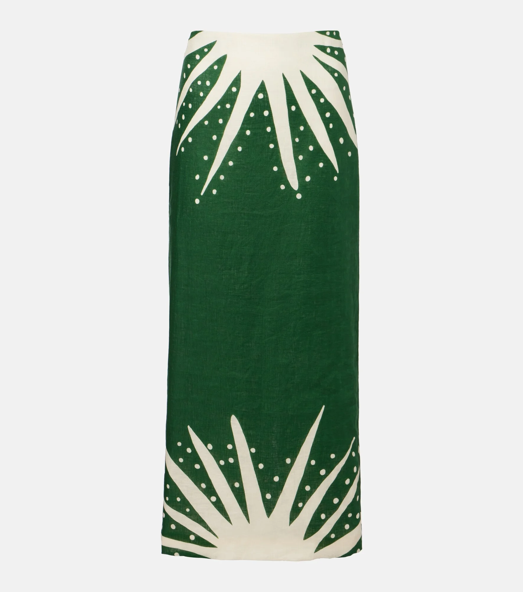 Cala de la Cruz blends joyful color with sculptural silhouettes, creating statement pieces that feel playful and confident. The Bruna midi skirt is proudly crafted in Colombia from linen and showcases a streamlined silhouette with an oversized print. Product Details - Material: 100% linen - Care instructions: dry clean - Made in Colombia - Color: green - Designer color name: Soleilsage - Closure: concealed zipped back - Long vent - Item number: P01168155 Size & Fit - True to size - Non-stretchy fabric - High-waisted - The model seen in the picture is 178cm-5'10" and wearing a size XS