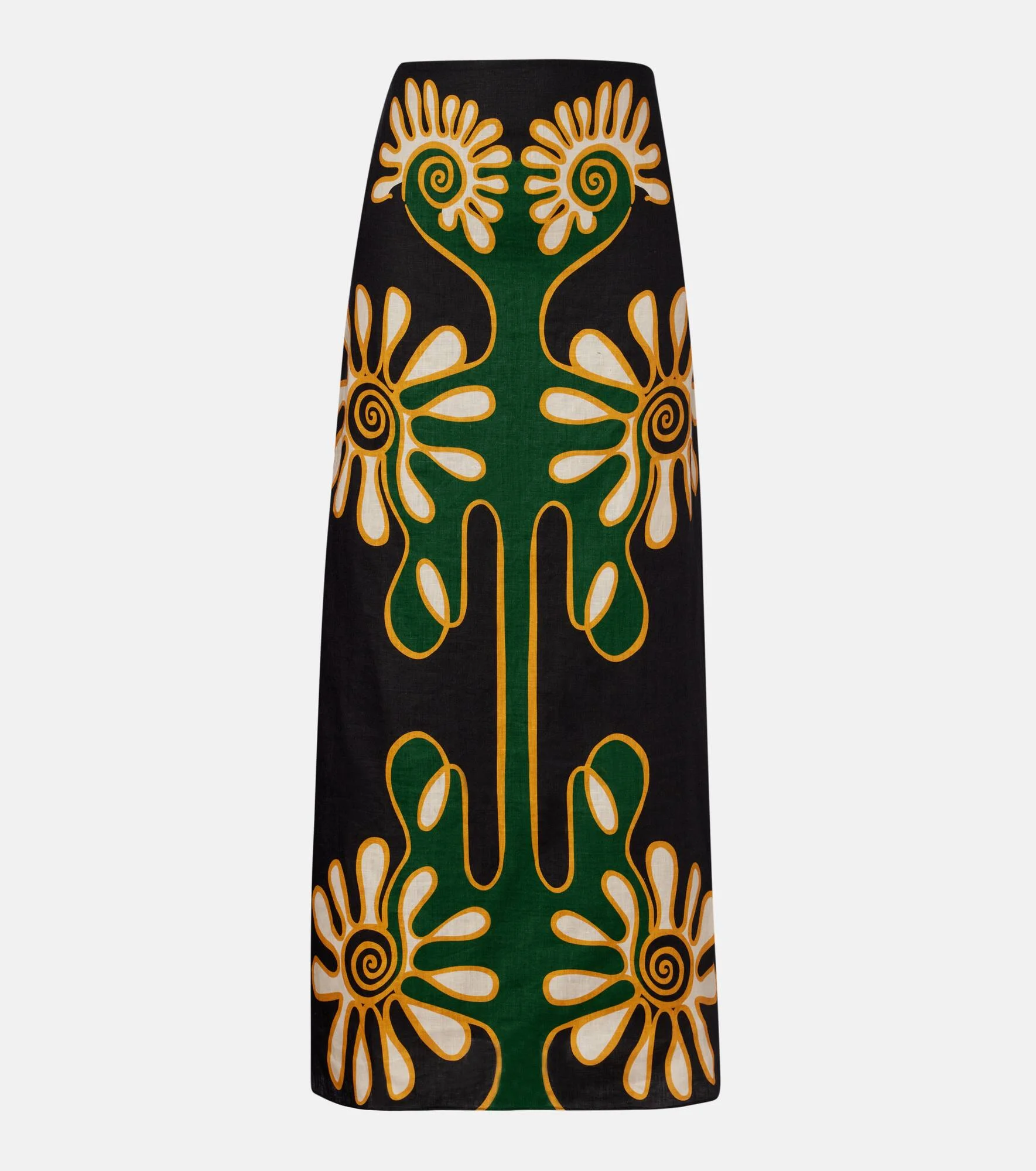 Colombian brand Cala de la Cruz builds its designs around responsible production, high-quality materials, and clean lines. The Celina midi skirt is made from pure linen and boasts a colorful print. Product Details - Material: 100% linen - Care instructions: dry clean - Made in Colombia - Color: multicoloured - Designer color name: Namur - Item color: black, multicolor - Closure: concealed zipped back - Lining: 100% cotton - Item number: P01122107 Size & Fit - True to size - Non-stretchy fabric - The model seen in the picture is 178cm-5'10" and wearing a size XS