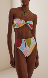 Hailing from Cali, Colombia, Cala de la Cruz is the brainchild of Carolina Lopez, who harnesses her expertise in textiles, bold prints, and mesmerizing color combinations into responsibly fabricated and produced warm-weather treasures that exude a joyful ease. This bandeau-style bikini top has twist detailing across the bust and a simple clasp fastening. The exclusive print perfectly matches the brand’s ‘Lulu’ briefs. PRODUCT DETAILS - Pre-Fall ‘25 - Clasp fastening - Composition: 77% polyester, 23% elastane - Hand wash - Designer Color: Oleo - Made in Colombia SIZE & FIT - Our model is wearing a size Small - Model is 5'10" with a 30" bust, 24" waist, and 34" hip