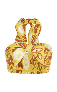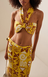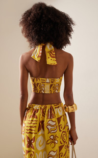 Hailing from Cali, Colombia—Cala de la Cruz is the brainchild of Carolina Lopez, who harnesses her expertise in textiles, bold prints, and mesmerizing color combinations into responsibly fabricated and produced warm-weather treasures that exude a joyful ease. The 'Vita' is a cropped bra silhouette crafted from crisp, breathable linen and fashioned with a shirred back panel for a snug, secure fit. Pair it with the co-ordinating skirt. PRODUCT DETAILS - Pre-Fall '24 - Slip on - Composition: 100% Linen - Dry clean - Imported SIZE & FIT - Designed for a slim fit